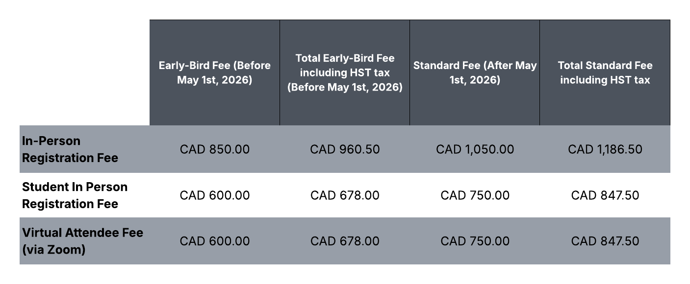 o Up to May 1st, 2026, the registration fee will be refunded, minus an administrative fee of CAD 100